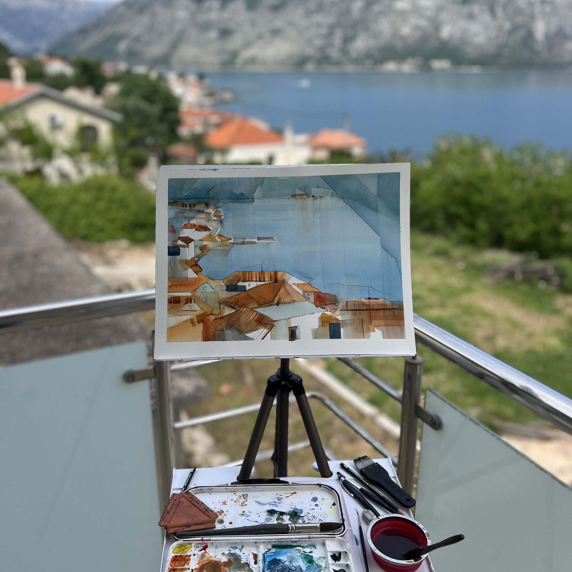 Es ist immer schwer, sich vorzustellen. Mein Name ist Marina, ich bin seit 10 Jahren freischaffende Künstlerin und arbeite mit Aquarellfarben. Ich bin ins Aquarell verliebt, nehme an verschiedenen Ausstellungen teil, unterrichte und liebe Plein-air Malerei. Ich bin Diplom Ingenieurin, aber Malen ist meine Berufung.