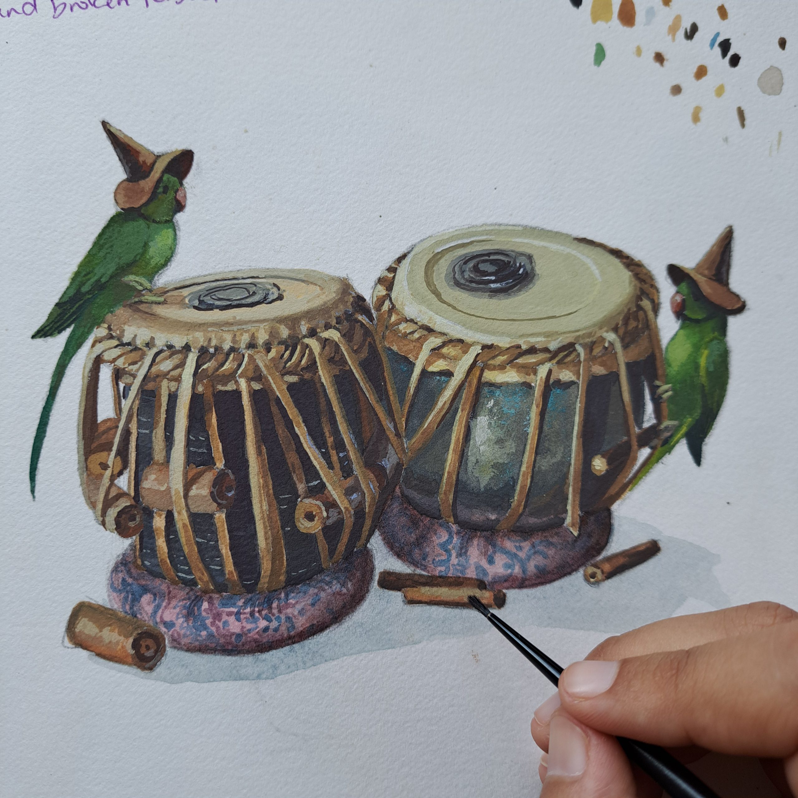 You work with watercolor and gouache in your illustrations. What do you enjoy about each of these mediums, and how do they complement each other in your work?