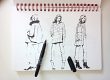 J’ai changé de papier pour 2016, et suis passée au bloc Paper Layout de Hahnemühle. J’utilisais déjà leur papier lisse pour les aquarelles et différents feutres, et avais obtenu de bons résultats pour des reproductions également. Cela convient très bien, même pour des dessins purement au crayon. Autrefois, j’ai déjà assemblé plusieurs dessinsnumériquement pour composer une scène, mais maintenant ce n’est plus la peine: le papier layout supporte plusieurs corrections et de multiples esquisses. Désormais je peux dessiner toutes les 12 scènes en entier.