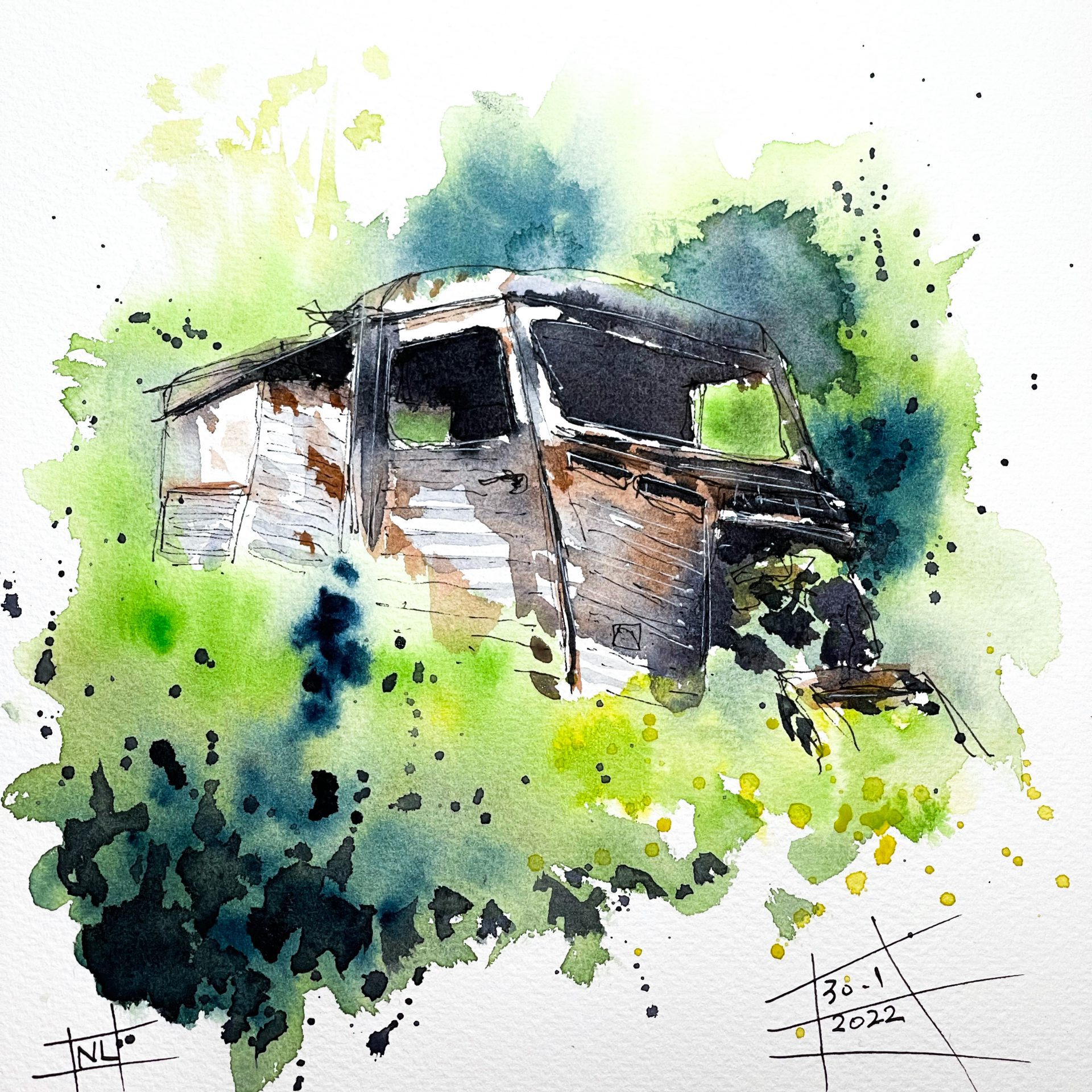 Nicolas pratique le croquis in situ depuis plusieurs années dans des lieux familiers ou plus lointains, équipé d’un carnet, d’un stylo-plume et d’une boîte d’aquarelle. Il a une prédilection pour les sujets urbains et l’architecture, qu’ils soient connus ou moins connus, récents ou plus anciens, qui ont quelque chose à raconter de l’activité humaine et du temps qui passe. Il essaie d’en donner sa vision, en privilégiant le dynamisme du trait, de la composition, de la couleur ou des contrastes s’en trop s’éloigner pour autant de la réalité du sujet.