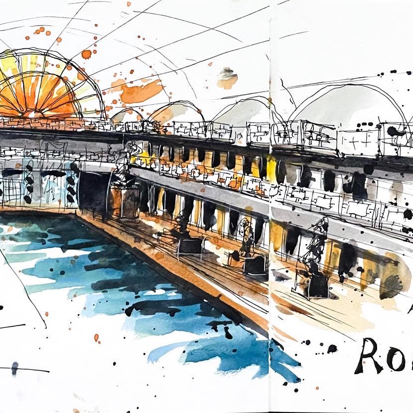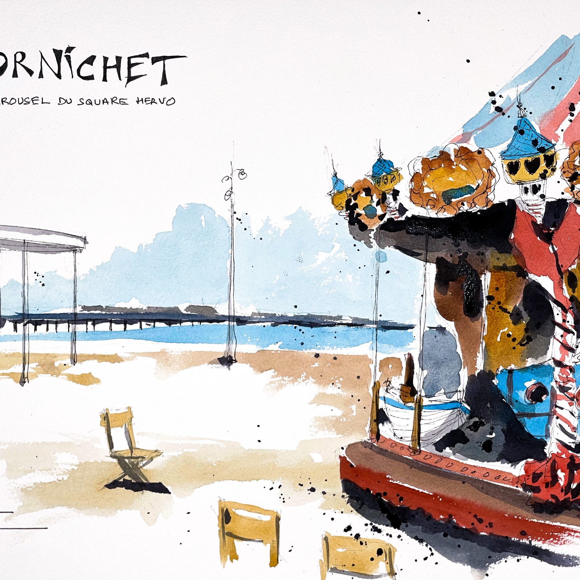 Adolescent, je noircissais mes cahiers de latin avec des croquis de temples romains, des détails de colonnes, de sculptures antiques… J’inventais aussi des personnages de BD. J’ai pratiqué plusieurs techniques par la suite : la peinture à l’huile, figurative et abstraite, le modèle vivant à l’encre, au feutre, fusain, sanguine, crayon. Mais l’envie de croquer in situ dans des carnets ma vision de la ville, des rues, de l’architecture, des monuments remarquables ou des édifices moins célèbres me trottait depuis longtemps dans la tête. J’ai franchi le pas en 2018. Une vraie révélation !