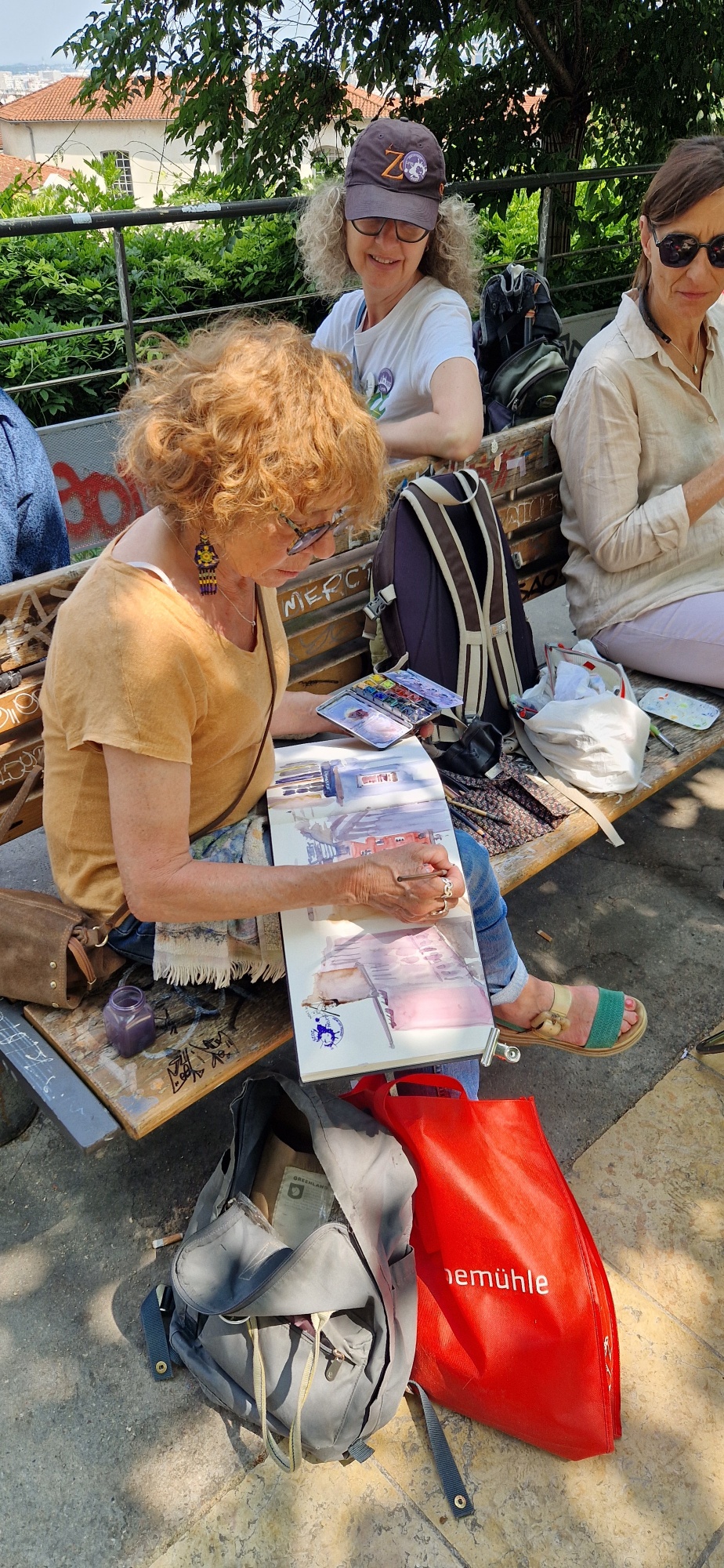 Sketcher:innen aus ganz Frankreich (und darüber hinaus) kamen zusammen, um ihre Sicht auf Lyon festzuhalten. Dabei wurde gezeichnet, diskutiert, gelacht – manchmal auch ganz still nebeneinander gesessen, jede:r vertieft in die eigene Linie.