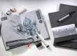 THE GREY BOOK ist ein Skizzenbuch in edlem Einband mit dezenter holzartiger Maserung. Das Buch im Format A5 oder A4 enthält lichtgraues Papier. Es eignet sich vor allem für Arbeiten mit Tuschestiften, Füller und Acrylmarkern sowie andere wasserbasierte Stifte mit wenig Abrieb.